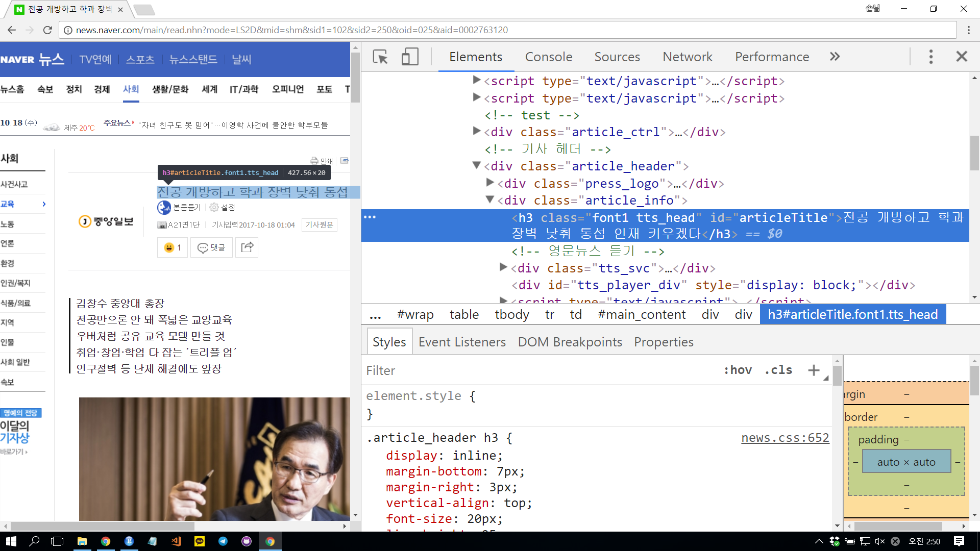 class: center, middle, title-slide ## R로 웹 데이터를 가져오는 4가지 방법.small[(은 크롤링)] ### <https://mrchypark.github.io/getWebR> #### [[pdf버전]](https://github.com/mrchypark/getWebR/blob/master/docs/getWebR.pdf) [[문의하기]](http://pf.kakao.com/_RXANd) [[의견 및 오류 신고]](https://github.com/mrchypark/getWebR/issues/new) #### [스타누르기](https://github.com/mrchypark/getWebR)는 컨텐츠 제작자를 춤추게 합니다. ### 박찬엽 ### 2017년 10월 18일(updated 2019-01-10) --- class: inverse <br> .pull-left[ .pull-right[ <br> <br> <br>  ] ] .pull-right[ ### 박찬엽 - .yellow[(현)]코빗 재무팀 데이터 담당자 * 재무DB 구축/관리 및 자동화 - .gray[(전)]서울도시가스 선행연구팀 연구원 * 챗봇 엔진 개발 및 서버 구축 - .gray[(전)]2017년 패스트 캠퍼스 데이터 분석 R 강의 * [데이터 분석을 위한 중급 R 프로그래밍](http://www.fastcampus.co.kr/data_camp_dabrp/) - N사 뉴스 크롤러 [N2H4](https://github.com/forkonlp/N2H4), D사 뉴스 크롤러 [DNH4](https://github.com/forkonlp/DNH4) 관리자 * [ForkonLP](https://forkonlp.github.io/) 프로젝트 - .blue[**FACEBOOK**]@[mrchypark](https://www.facebook.com/mrchypark) - .gray[**GITHUB**]@[mrchypark](https://github.com/mrchypark) ] --- class: inverse 블로그를 운영하고 있습니다. [<img src="https://user-images.githubusercontent.com/6179259/44062214-660e0516-9f96-11e8-8485-45c6b311639c.png" width=100%>](https://mrchypark.github.io/) --- class: inverse 열심히 R 생태계에 기여하고 있습니다. <img src="https://user-images.githubusercontent.com/6179259/44060543-fb3e0638-9f8f-11e8-8665-04a3705c2427.png" width=100%> --- class: inverse 인정도 조금 받고 있습니다. [<img src="https://user-images.githubusercontent.com/6179259/44060662-54345012-9f90-11e8-86e9-e5292b48770e.png" width=100%>](http://git-awards.com/users?country=south+korea&language=r) --- class: inverse 우연치 않게 번역도 했습니다. .pull-left[ <img src="https://user-images.githubusercontent.com/6179259/44061228-74272ac8-9f92-11e8-99fc-7c4cbd81d2b4.png" width=99%> ] .pull-right[ <img src="http://image.yes24.com/momo/TopCate1880/MidCate009/187987333.jpg" width=85%> ] --- class: inverse 한글 텍스트 기반 데이터 보급에 노력하고 있습니다. [<img src="https://user-images.githubusercontent.com/6179259/44061522-af39c80e-9f93-11e8-8977-9da05ee24115.png" width=100%>](https://forkonlp.github.io/) --- class: inverse ### [.blue[forkonlp]](https://forkonlp.github.io/) - [N2H4](https://github.com/forkonlp/N2H4) : 댓글 수집이 가능한 네이버 뉴스 크롤러 - [DNH4](https://github.com/forkonlp/DNH4) : 댓글 수집이 가능한 다음 뉴스 크롤러 - [presidentSpeechKr](https://github.com/forkonlp/presidentSpeechKr) : 대통령 연설문 - [stdkor](https://github.com/forkonlp/stdkor) : 표준국어대사전 텍스트 자료 ### [.yellow[개인]](https://mrchypark.github.io/about) - [sendgridr](https://github.com/mrchypark/sendgridr) : 메일 전송 서비스 sendgrid api 패키지 - [ubci](https://github.com/mrchypark/ubci) : 업비트 거래소 인덱스&시세 데이터 - [tqk](https://github.com/mrchypark/tqk) : 한국 주식 데이터 - [krlift](https://github.com/mrchypark/krlift) : 한국 승강기 현황 데이터 - [krlandprice](https://github.com/mrchypark/krlandprice) : 한국 표준공시지가 데이터 --- class: center, middle, title-slide, inverse # .pen-p[잘 부탁드립니다.] --- class: center, middle, title-slide ## .pen-p[R로 웹 데이터를 가져오는 4가지 방법] --- class: center, middle, title-slide ## 웹에 있는 데이터를 가져오는 단계 ### 요청 - 추출 - 저장 ### 반복 - 예외처리 - 최적화 --- ## 관련 R 패키지 및 함수 #### - 요청 : curl, httr, rvest, RSelenium #### - 정리 : 정규표현식, jsonlite, rvest #### - 저장 : write.*() #### - 반복 : for, parallel #### - 예외처리 : try, if #### - 최적화 : profvis, microbenchmark --- ## 관련 R 패키지 및 함수 #### **- 요청 : curl, httr, rvest, RSelenium** #### **- 정리 : 정규표현식, jsonlite, rvest** #### - .gray[저장 : write.*()] #### - .gray[반복 : for, parallel] #### - .gray[예외처리 : try, if] #### - .gray[최적화 : profvis, microbenchmark] --- class: center, middle, title-slide ## 오늘 이야기 할 것 ### 요청(4가지)과 정리 ### .gray[메인과 에피타이저] --- class: center, middle, title-slide ## 그럼 에피타이저 먼저! --- ## 서버가 하는 것 .pull-left[ 외부에서 요청하면 규칙대로 정보를 제공하는 것 ] .pull-right[  ] --- ## 브라우저가 하는 것 .pull-left[ 서버가 주는 것들을 사용자에게 보여주는 것 ] .pull-right[  ] --- ## 웹 서버가 우리에게 주는 것 text(html, css, js, etc), image. 브라우저가 약속된 모양으로 우리에게 보여줌. .pull-center[.set[  ]] --- ## 실제로 브라우저가 받는 파일들 .pull-center[.half[  ]] --- class: center, middle, title-slide ## * 그럼 web api는 뭔가? web으로 제공되는 Application Programming Interface 함수인데 외부 서버에서 동작하여 웹 기술로 결과를 받는 것 --- ## 우리가 필요한 것 text(html) 중 일부만(ex>제목)  --- class: center, middle, title-slide ### 그럼 이제 정리(에피타이저)를 설명 #### .blue[html 문서안에 글자 중 필요한 것만 가져오기] --- class: center, middle, title-slide #### 1번 글자를 다루는 강력한 방법 : 정규표현식 하지만 어려움 ### 2번 xml의 node를 다루는 패키지 : rvest --- class: center, middle, title-slide 정규표현식은 [검색](https://www.google.co.kr/search?q=%EC%A0%95%EA%B7%9C%ED%91%9C%ED%98%84%EC%8B%9D&oq=%EC%A0%95%EA%B7%9C%ED%91%9C%ED%98%84%EC%8B%9D&aqs=chrome..69i57j69i61.2391j0j7&sourceid=chrome&ie=UTF-8)해보세요. r에서는 [stringr](https://github.com/tidyverse/stringr) 이라는 서포트 